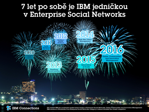 S podílem přes 13 % a meziročním růstem 22 % si IBM udržuje náskok před Salesforce, Jive a Microsoftem. Pro naše zákazníky na IBM Connections je to jistě povzbuzující zpráva, která jen potvrzuje, že si zvolili správně. Pro IBM je to již sedný podobný úspěch v řadě, což si zaslouží malou oslavu (viz obrázek, kliknutím stáhnete v plném rozlišení).