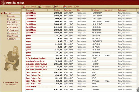 - schválení/zamítnutí proplacení faktury kompetentním pracovníkem