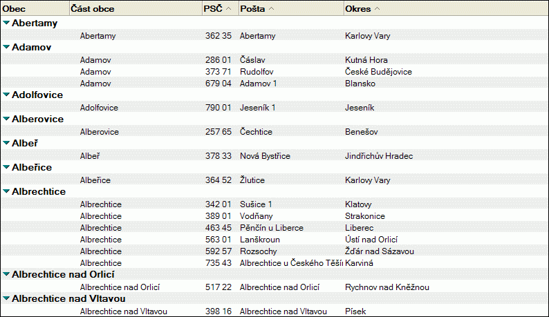 - Potřebujete definovat určité území v České republice výčtem poštovních okrsků nebo třeba okresů?