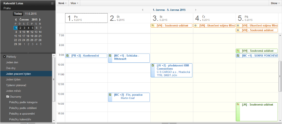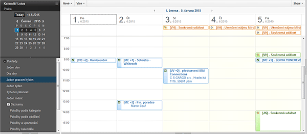 - Podpora všech standardních funkcí Notes kalendáře